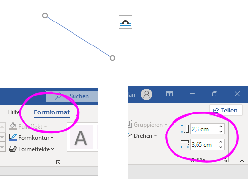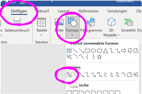 Eine Linie mit beliebiger Position und Länge in das Dokument einfügen.