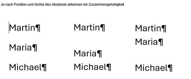 Textteile, die eng zusammenstehen werden als zusammengehörig verstanden: