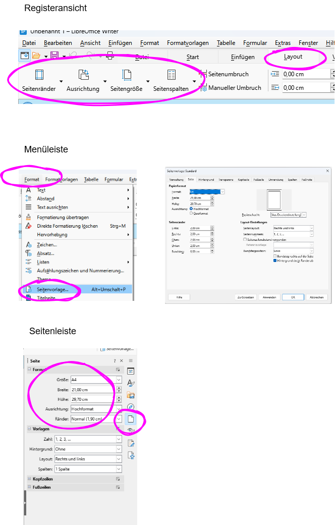 Grundlegend für die Gestaltung eines Dokuments ist natürlich die Größe einer einzelnen Seite. Standardeinstellung in Europa ist dabei DIN A4 - aber auch andere Größen sind natürlich möglich.